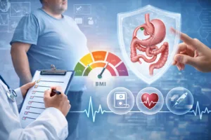 Pacient de 42 de ani, femeie, IMC 48,2 kg/m² (greutate 128 kg), obezitate morbidă clasa III, circumferință taliei de 118 cm. Diabet zaharat tip 2